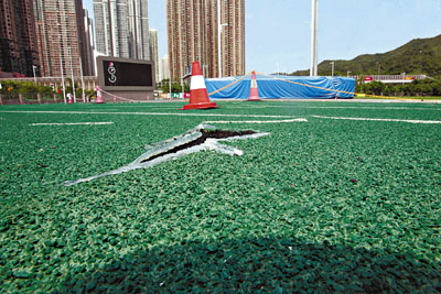 香港康文署總康樂事務(wù)經(jīng)理周志文也指,康文署職員每天都會(huì)檢查運(yùn)動(dòng)場情況,若再發(fā)現(xiàn)有地面不平情況,會(huì)盡早通報(bào)。