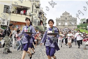 今年托盤比賽規(guī)則與往年一樣,比賽路線仍由大三巴出發(fā),途經(jīng)人多擠迫的賣草地,終點為議事亭前地。參賽者托盤上盛載一支瓶裝啤酒,除速度要快外,比賽過程不得用手觸摸啤酒,抵達(dá)終點后,啤酒剩余容量最多、犯規(guī)次數(shù)最少者勝出,因此就算第一個沖線也未必是得獎?wù)摺?/p>