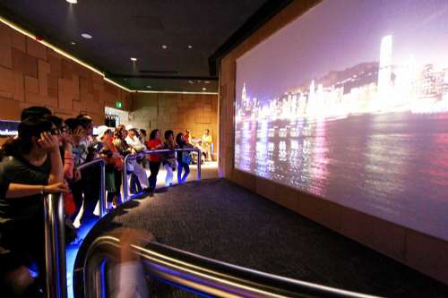 步入展覽廳,觀眾便置身于360度弧形屏幕,觀看一條長(zhǎng)2分鐘主題為“香港多面體”的短片,影片藉多元的聲音和視覺效果,帶出不同層次生活的對(duì)比,如城市與自然,傳統(tǒng)與現(xiàn)代,中西文化,發(fā)展與保育等。同時(shí),場(chǎng)內(nèi)有十四個(gè)直立LED顯示屏聯(lián)動(dòng)播放,營(yíng)造出動(dòng)感和引人入勝的視覺體驗(yàn)。觀賞影片時(shí),還可和地面上特制的磚塊互動(dòng),互動(dòng)地磚可感應(yīng)觀眾的移動(dòng),并配合短片的色調(diào),亮起不同的顏色方塊做出回應(yīng)。