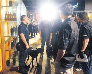 港九新界各總警區(qū)反黑組6日晚均參與這次反黑行動(dòng),而O記及西九龍總警區(qū)反黑組則集中掃蕩油尖旺區(qū)黑幫“看場(chǎng)”地盤(pán),其中卡拉OK夜總會(huì)、色情場(chǎng)所及售賣(mài)翻版光盤(pán)場(chǎng)所都成警方搜查目標(biāo)。