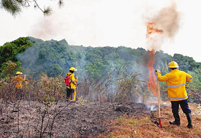 中新網(wǎng)10月27日電 據(jù)香港《文匯報(bào)》報(bào)道,不少香港市民趁26日重陽(yáng)節(jié)到各區(qū)墳場(chǎng)掃墓,適逢天文臺(tái)發(fā)出黃色火災(zāi)危險(xiǎn)警告,以致山火頻發(fā)。消防處26日接獲32宗山火報(bào)告,雖無(wú)人受傷,但消防員疲于奔命,帶備火拍及背泵上山撲火。由于山火眾多,港府飛行服務(wù)隊(duì)直升機(jī)也頻頻出動(dòng),空投水彈協(xié)助救火。