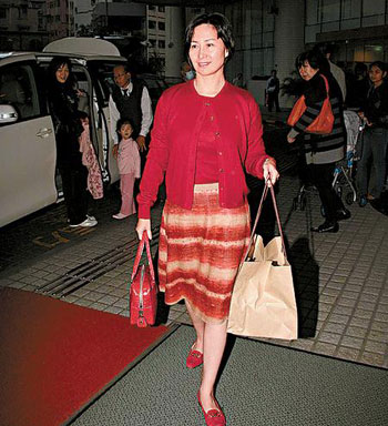 穿上鮮紅色外套、紅色上衣及紅白橫間半截裙,一身喜慶打扮的超瓊下午5時(shí)20分現(xiàn)身醫(yī)院,問(wèn)她送什么生日禮物給賭王?她即報(bào)以一個(gè)燦爛的笑容,然后走近記者,再打開手中的紙袋,里面藏有一個(gè)中式刺繡禮盒,接著超瓊笑道:“就在里面了。(是生日蛋糕?)不。(是瓷器嗎?)是的。(是壽星公?)是!