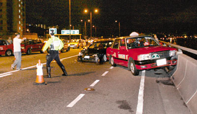今年7月,警方于觀塘繞道攔截非法賽車時,截停5輛的士、私家車及客貨車等,司機(jī)不滿被當(dāng)作“人肉路障”,部分車輛損毀嚴(yán)重,有的維修費高達(dá)10萬元,司機(jī)向警方投訴要求賠償。