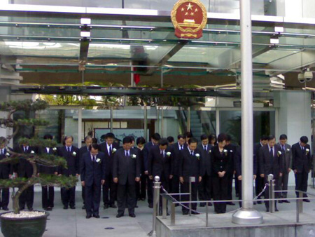 早上9時許,行政長官曾蔭權率領一眾官員,包括政務司司長唐英年、財政司司長曾俊華、律政司司長黃仁龍,以及一眾司局長及其它官員,在政府總部廣場外,默哀1分鐘,以悼念青海地震遇難同胞。