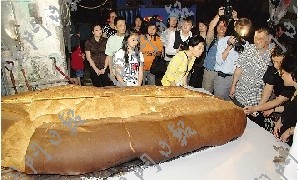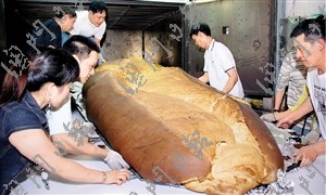 中新網(wǎng)5月22日電 《澳門(mén)日?qǐng)?bào)》今日在頭條刊發(fā)報(bào)道稱(chēng),由澳門(mén)金馬輪咖啡餅店焗制的巨型豬扒包于21日舉行的“愛(ài)在澳門(mén)——第二屆世紀(jì)婚禮兩岸四地2009”活動(dòng)開(kāi)幕儀式中亮相,將申請(qǐng)成為吉尼斯世界紀(jì)錄大全中的全球最大的豬扒包。21日不少與會(huì)者均對(duì)巨型豬扒包十分感興趣,紛紛與包合照,場(chǎng)面熱鬧。