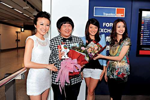 中新網(wǎng)5月6日電 憑《I Will Always Love You》一曲在國際爆紅,有“臺版蘇珊大嬸”之稱的小胖林育群,5日由臺灣來港展開五天宣傳之旅,無線特地派出應屆三位港姐劉倩婷、熊穎詩及李姿敏到機場獻花給他,令小胖高興得一直在冒汗。對于外形備受批評,但小胖坦言發(fā)型、肚腩及領結都是他的標志,所以無意減肥或整容,倒希望眼睛可以大一點,因眼睛小戴隱形眼鏡有難度。