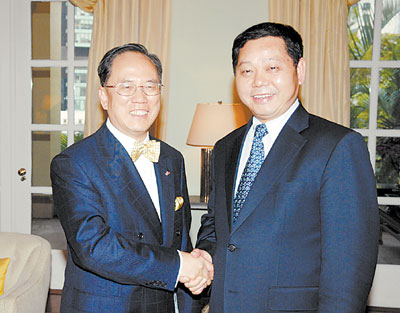 曾蔭權在會面時表示,香港近兩年對深港兩地經濟社會發(fā)展等各方面做了深入研究,進一步堅定了與深圳開展合作的決心,確定了香港發(fā)展目標與深圳緊密聯(lián)系的發(fā)展方向。今后深港要進一步加強溝通和融合,互利共贏,為深港市民多做實事,尤其是落實具體項目,從而推動深港合作再上新臺階。