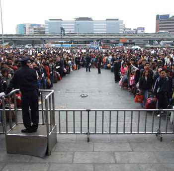 今年春運較去年提前,特別是內(nèi)地施行新休假制度后,“五一”取消長假,赴港游客流提前涌現(xiàn)在春運期間。廣東省公安出入境部門人士預計,2008年春節(jié)前夕及期間經(jīng)深圳赴港個人游及團隊旅客,可望同比去年增長20%倒30%,而北上的香港人同比也將有10%多的增長。因此,今年春運期間,港澳出入境流連同旅游探親流、放假學生流、節(jié)日商務流及外來務工流匯合,凸現(xiàn)客流高度、高峰、時段“三大集中”,廣深、廣九線疏運難度加大。
