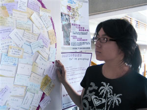 徐藝瑋表示,事發(fā)當(dāng)晚澳大內(nèi)地學(xué)生會(huì)立即召開緊急會(huì)議,發(fā)起募捐及籌備悼念晚會(huì),也放置了祝福板讓同學(xué)向?yàn)?zāi)區(qū)的同胞送上祝福。她表示澳大有不少來自四川及附近受震地區(qū)的同學(xué),他們十分擔(dān)心家里的情況,連日徹夜難眠。希望通過這次活動(dòng),為災(zāi)區(qū)的同胞送上支持外,也給予身邊正為家人情況擔(dān)憂的同學(xué)一點(diǎn)安慰。