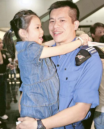 參與歡迎儀式的尚有搜救隊的家屬和同事,隊員在接受嘉勉期間,一直強(qiáng)忍悲喜交集的心情,待儀式完成后,數(shù)十人便沖前,輕吻妻兒和與曾出生入死的同事相擁抱,更有人不禁流下男兒淚,訴說救援行動中所遇驚險難忘的經(jīng)歷,分享喜與悲。