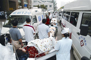 澳門醫(yī)療隊(duì)駐扎的成都市第三人民醫(yī)院有40多名傷者借火車運(yùn)送到杭州某大醫(yī)院,四川最大的華西醫(yī)院也有多名傷者由飛機(jī)送往其它省份,澳門醫(yī)療隊(duì)長(zhǎng)李偉成及山頂醫(yī)院診療室醫(yī)生李彩珠參與運(yùn)送工作。