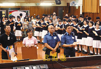六月五日,香港學(xué)友會(huì)、香港群青會(huì)在香島中學(xué)舉辦“川港連心—四川地震悼念會(huì)”。多名曾經(jīng)到災(zāi)區(qū)報(bào)道的記者和搜救隊(duì)成員及專家,應(yīng)邀到場與學(xué)生們一起悼念遇難的同胞,并分享生命教育的意義。 中新社發(fā) 洪少葵 攝
