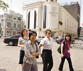 中新網7月22日電 據(jù)香港文匯報報道,哈爾濱被譽為“東方莫斯科”,來到這里的人都要到著名的中央大街上看一看。21日上午9時多,香港特首曾蔭權夫人曾鮑笑薇在當?shù)毓ぷ魅藛T的陪同下來到這里。