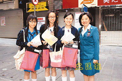 中新網(wǎng)12月4日電 香港女童軍總會(huì)全港賣(mài)旗日早前圓滿(mǎn)舉行,今次賣(mài)旗籌款活動(dòng)除了女童軍會(huì)員和家長(zhǎng)們?nèi)χС滞,更獲得全港接近400間中、小學(xué)及其它機(jī)構(gòu)的鼎力支持,令今次參與賣(mài)旗的義工人數(shù)達(dá)到破紀(jì)錄的1.2萬(wàn)多人,成績(jī)令人振奮。