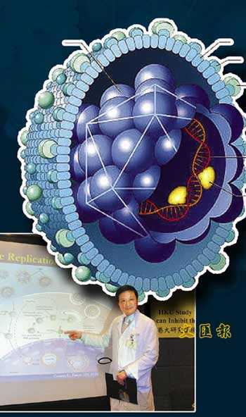 據(jù)香港文匯報(bào)報(bào)道,港大醫(yī)學(xué)院內(nèi)科學(xué)系和理學(xué)院化學(xué)系經(jīng)過3年的研究,發(fā)現(xiàn)“納米銀顆!笨捎行б种埔腋尾《緩(fù)制。港大微生物學(xué)系助理教授許志堅(jiān)解釋,納米銀顆粒有較大表面活性面積和多孔性,可與小分子相互結(jié)合。研究人員把平均直徑僅5至50納米的銀顆粒(100萬納米=1毫米),注入病人體內(nèi),銀粒便會(huì)依附在乙肝病毒上。