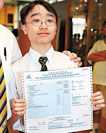 香港考評局把香港的會考中、英文科與IGCSE的評級掛鉤,因此其IGCSE英文科成績即相當于香港會考的5*,中文科相等于第4級。而他最新應(yīng)考的托福試成績也達114分(滿分為120分)。