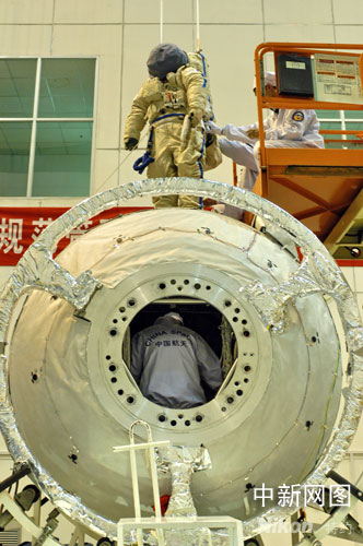 中國神舟七號(hào)載人航天飛船發(fā)射在即。圖為飛船在進(jìn)行測(cè)試。袁明月 攝