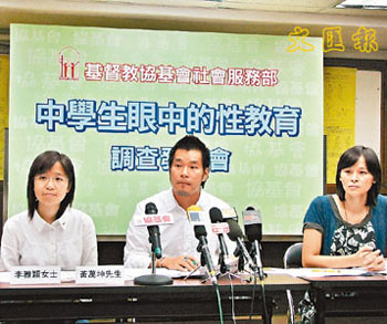 基督教協(xié)基會(huì)屯門綜合青少年服務(wù)中心于6至7月間,就“中學(xué)生眼中的性教育”為題進(jìn)行問(wèn)卷調(diào)查,成功訪問(wèn)了3584名中學(xué)生,當(dāng)中男女約各占一半。調(diào)查發(fā)現(xiàn),29.1%的受訪學(xué)生坦言“不喜歡參與學(xué)校性教育的活動(dòng)”,較“喜歡參與的學(xué)生”高出2倍。21.7%學(xué)生認(rèn)為校內(nèi)性教育活動(dòng)形式“沉悶”。