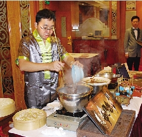 29日記者招待會現(xiàn)場,更邀請六家本次參加美食節(jié)的臺灣與會美食餐廳,如青青餐廳、宜蘭礁溪老爺大酒店、南投金都餐廳、河邊海鮮餐廳、度小月?lián)忻、周氏蝦卷即場示范鎮(zhèn)店之寶的烹調(diào),并向大家推介當?shù)仫嬍澄幕?/p>