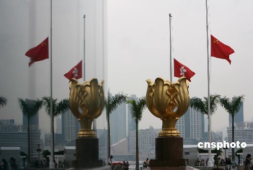 中新網(wǎng)5月19日電 香港特區(qū)政府發(fā)言人18日晚宣布,香港特別行政區(qū)的所有政府機(jī)構(gòu)及學(xué)校,將于全國(guó)哀悼日(2008年5月19日至21日)期間下半旗志哀,以表達(dá)對(duì)四川汶川大地震遇難者的深切哀悼。