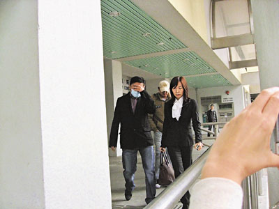 被告提訊后,在律師及友人的陪同下迅速離開法庭。戴上口罩的被告在傳媒包圍下拍照時,輕松大方地步出法庭。