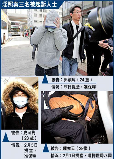 控方在庭上呈上十一張涉案相片,強(qiáng)調(diào)內(nèi)容十分不雅,指相片絕不能在法庭以外地方公開(kāi)。控方認(rèn)為案情非常嚴(yán)重,擔(dān)心被告會(huì)棄保潛逃及騷擾證人,另外,控方又指被告精通計(jì)算機(jī),可在任何地方再上載照片,對(duì)公眾繼續(xù)造成影響,所以反對(duì)其保釋外出。
