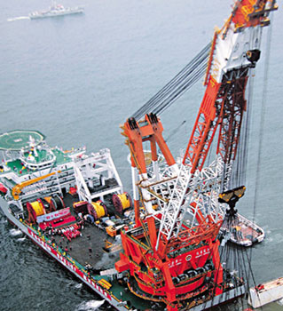 首先,“華天龍”號能穩(wěn)當?shù)跗?000噸重物的巨臂,勾起綁好沉船的鋼索,當沉船露出水面,打撈人員即在船上適當位置焊上吊耳,以便“華天龍”將沉船扳正,然后移往淺水位置,最后利用潛水泵將沉船積水抽干,令船身保持浮力,方便搜索人員進入船艙搜尋失蹤者。