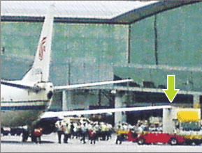 8日上午11時(shí)53分,客機(jī)降落后預(yù)備泊進(jìn)34號停泊位,其間右邊機(jī)翼末端撞及旁邊運(yùn)送物資工程貨車的車頂,傳出巨響。目擊者稱,機(jī)翼與貨車車頂擦撞范圍有2至3尺,眾人恐怕意外引發(fā)機(jī)翼和機(jī)肚油缸爆炸,貨車司機(jī)立即跳車狂奔。多個(gè)部門人員聞?dòng)嵓娂娳s至,疏散飛機(jī)上近百人,氣氛一度緊張。