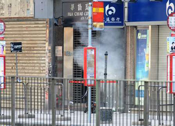 警方引爆在旺角發(fā)現(xiàn)的可疑物品。(圖片來源:大公報(bào))