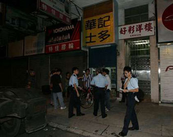 香港警方在發(fā)生劫案的小店外調(diào)查。(圖片來(lái)源:大公報(bào))