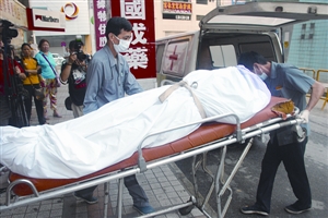 死者遺體由仵工送往殮房處理。(圖片來源:澳門日報)
