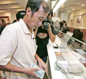 中新網(wǎng)9月25日電,據(jù)香港《明報》報道,近日一個又一個的手機短訊,謠傳香港東亞銀行出現(xiàn)財困,終令這家香港第五大銀行遭遇歷來第一次擠提,存戶排隊提款的人龍至25日凌晨仍未散去。