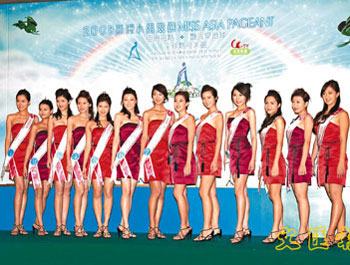 中新網10月14日電 據(jù)香港《文匯報》報道,13位“2008亞洲小姐競選(香港賽區(qū))”的候選佳麗,13日在亞視總臺首次會見新聞界。13位候選佳麗分別穿上大會安排的紅色和紫色Tube Dress現(xiàn)身,并作自我介紹。