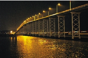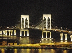 西灣大橋橋躉射燈未被盜去前,燈火通明。(圖片來源:澳門日?qǐng)?bào))