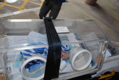 一名剛出生的女?huà)氡贿z棄在超市貨架,圖為女?huà)胨驮簷z驗(yàn)。圖片來(lái)源:大公報(bào)