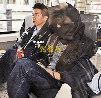 強(qiáng)奸少女的旺角警署探員梁禮仲由警車押送到九龍城法院。圖片來(lái)源:文匯報(bào)