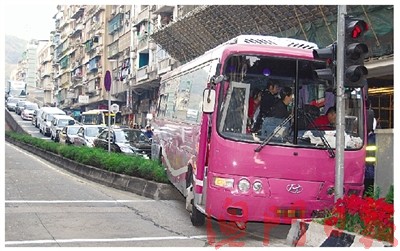 MI94XX號中澳旅行社大巴14日下午接載14名仁愛安老院長者和多名工作人員,到冼星海大馬路澳門回歸賀禮陳列館參觀后,回程返內(nèi)港仁愛安老院。約下午5時,旅游巴經(jīng)松山隧道,由天橋下坡進高士德大馬路時,疑突然剎車失靈,高速狂沖下斜,當(dāng)時培正對面的交通燈位正亮紅燈,前方有一輛載有一名女乘客的的士在燈前等候。