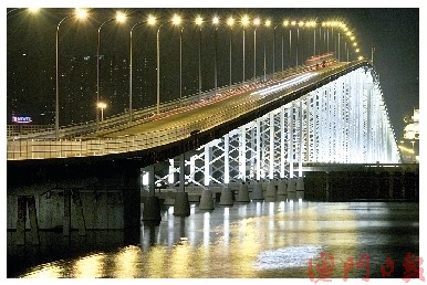 中新網(wǎng)3月16日電 據(jù)澳門日?qǐng)?bào)報(bào)道,澳門三條跨海大橋照明系統(tǒng)去年底在臺(tái)風(fēng)中受損及被“水老鼠”偷竊,有關(guān)單位耗資1800多萬(wàn)元進(jìn)行大規(guī)模維修。有關(guān)工程已全部完成,入夜后澳氹間海面再現(xiàn)“長(zhǎng)虹”。