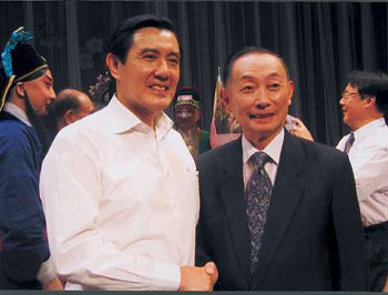 演出結(jié)束后,馬英九步上舞臺(tái),與梅葆玖握手,表示演出非常好,看了很高興。京劇即國(guó)劇,是文化國(guó)粹,兩岸應(yīng)該攜手發(fā)揚(yáng),他歡迎梅葆玖有機(jī)會(huì)到臺(tái)灣演出,到時(shí)他一定會(huì)來觀看。