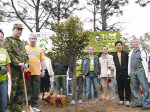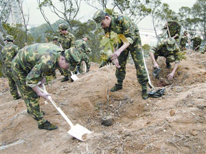23日上午近11時,這次主題為“軍民同心齊綠化,節(jié)能減排為國家”的植樹活動正式開始,王玉仁、趙存生與有關嘉賓,以及200名駐澳部隊官兵及近千名居民、學生,經(jīng)過20分鐘步行來到了大潭山山上。