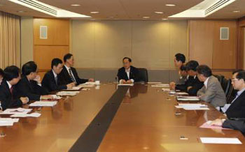 特首曾蔭權9日下午在中區(qū)特區(qū)政府合署會見鄉(xiāng)議局代表,繼續(xù)就《施政報告》進行咨詢。(圖片來源:文匯報)