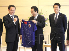 中新網(wǎng)7月6日電 據(jù)日本共同社網(wǎng)站報(bào)道,日本男足主帥岡田武史(53歲)及部分球員6日前往日本首相官邸拜訪首相菅直人。菅直人對(duì)日本男足給予了高度評(píng)價(jià)。