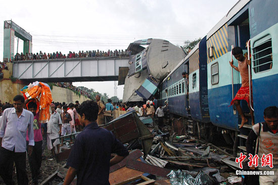 兩個(gè)月前,一列由東部西孟加拉國(guó)邦首府西加爾各答開(kāi)往西部大城市孟買(mǎi)的快速客運(yùn)火車(chē),駛至加爾各答以西約150公里的一條小鎮(zhèn)時(shí),13節(jié)車(chē)廂突然出軌,一列貨運(yùn)火車(chē)迎面駛至,把客車(chē)其中4節(jié)車(chē)廂撞至嚴(yán)重變形扭曲,造成145人死亡。
