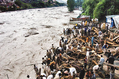 巴基斯坦北部凱伯爾-普什圖省是重災(zāi)區(qū),進入緊急狀態(tài)。貝沙姆地區(qū)泥石流,將多間房屋掩埋,活埋49人。賈爾瑟達(dá)地區(qū)一個新建堤壩崩塌,5000棟房屋被洪水沒頂,估計40萬人被困西北部各村落。