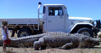 據(jù)稱,這條鱷魚從鼻子到尾部總長為22英尺(約合6.7米),相當(dāng)于一輛卡車的長度,F(xiàn)在這條巨型鱷魚已經(jīng)被當(dāng)?shù)剞r(nóng)民射死,因?yàn)樗恢痹谝u擊牛羊等家畜。