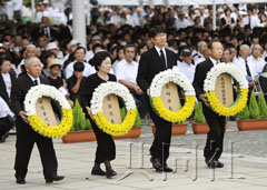 中新網(wǎng)8月9日電 據(jù)日本共同社網(wǎng)站報道,8月9日,日本長崎市迎來了原子彈爆炸65周年紀念日,原子彈爆炸遇難者慰靈和平祈愿儀式在長崎市松山町和平公園內(nèi)舉行。英、法兩個核持有國首次出席該紀念活動。除日本首相菅直人到場之外,包括俄羅斯、巴基斯坦及以色列在內(nèi)的32個國家均派代表列席,人數(shù)之多創(chuàng)歷史紀錄。當(dāng)?shù)貢r間當(dāng)天中午11點02分,全場在65年前原子彈投下的時刻集體默哀,為死難者祈福。