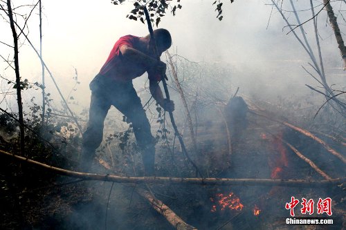 一名滿身泥土的滅火隊(duì)員對(duì)記者說(shuō),他們是10號(hào)從另一火場(chǎng)趕到這里的,“當(dāng)時(shí)的情形非常嚴(yán)重,地下是泥炭火,地上是森林火,煙霧中2米開(kāi)外就什么都看不到了,沒(méi)法呼吸。最后呼叫飛機(jī)趕來(lái)灑水才控制住火情!