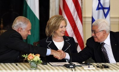 在美國(guó)國(guó)務(wù)卿希拉里的主持下,巴勒斯坦領(lǐng)導(dǎo)人阿巴斯和以色列總理內(nèi)塔尼亞胡自2008年年底后第一次坐在同一張談判桌前,著手就以色列定居點(diǎn)、耶路撒冷歸屬等最終地位問(wèn)題展開直接談判,以結(jié)束雙方數(shù)十年的沖突并實(shí)現(xiàn)“兩國(guó)方案”。