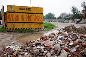 印度當(dāng)?shù)氐耐恋鼗刭徍铜h(huán)境影響的訴訟則進(jìn)一步延緩了籌備工作。如今,50億美元的籌備費用已是2003年預(yù)算的10倍,卻也并沒有使新德里的面容有所改觀。它更像是一個布滿碎片、漏雨屋頂、被挖開的人行道和破敗游泳池的巨大工地。