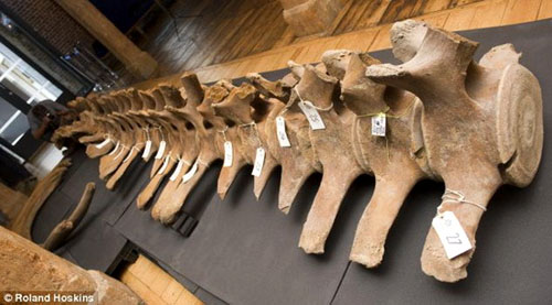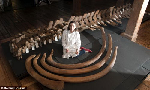 據(jù)《每日郵報》9月9日報道,考古學(xué)家2個月前在英國泰晤士河岸上發(fā)現(xiàn)了一頭北大西洋脊美鯨的骨架,該鯨在死亡時大約50多歲,而掩埋的時間距今約200多年。它的頭部已被剝離不知去向,骨架則留下來被泥土掩蓋。現(xiàn)在,它正在倫敦碼頭區(qū)博物館展示。